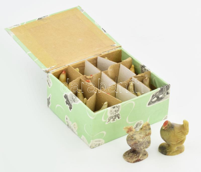 Beschreibung: 12 db kínai jáde csirke figura, eredeti dobozában, egyenként m: 4 cm