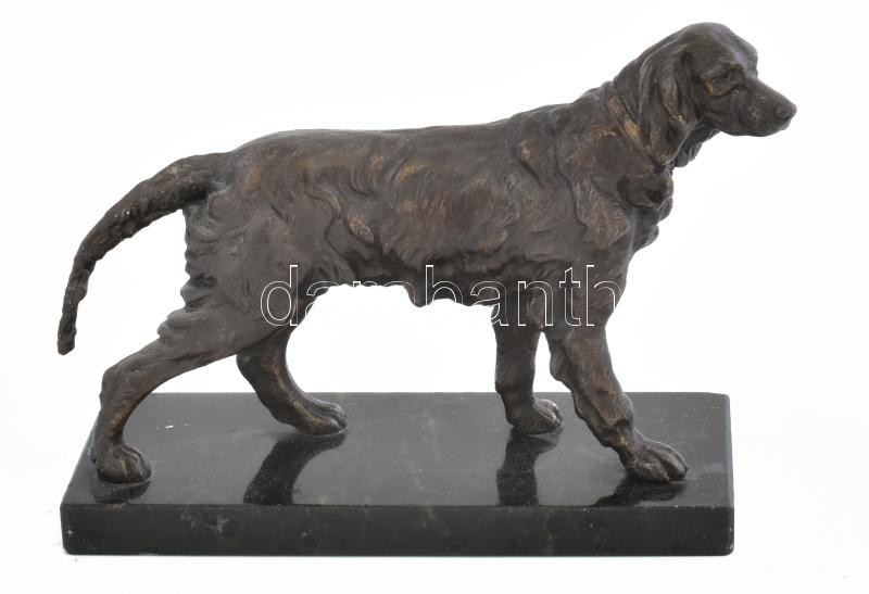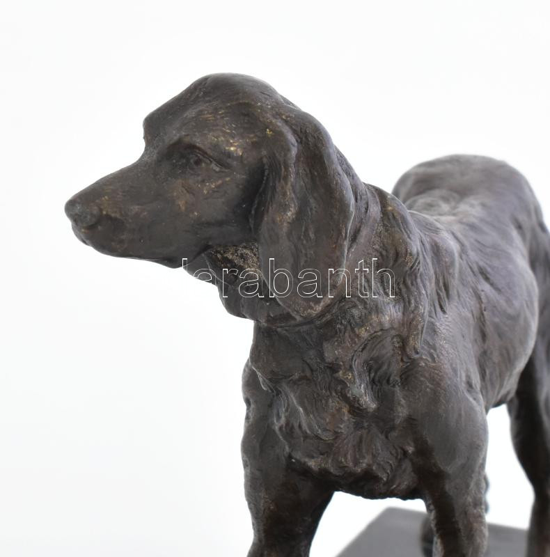 Beschreibung: Ismeretlen szobrász: vadászkutya. Patinázott bronz, márvány talapzaton, kopással,17x12 cm