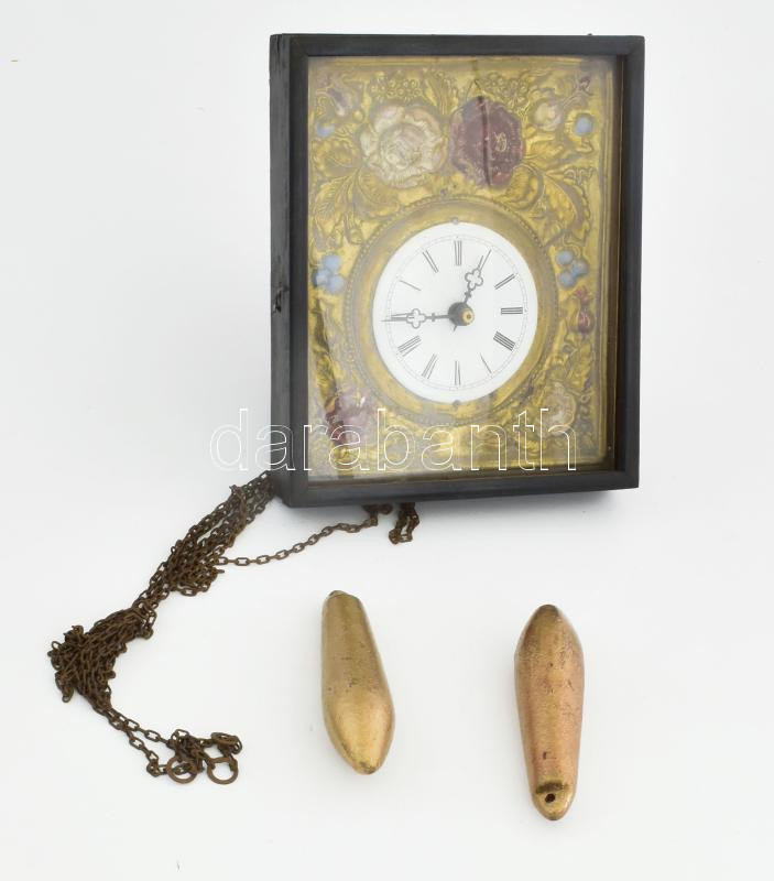 Parasztóra XIX. sz vége, XX. sz eleje, festett fa és réz, súlyokkal, ü... https://www.darabanth.com/de/455-Fernauktion/455.0/Kunst-Dokumente-andere-Sammelgebiete/Uhren~500011/Parasztora-XIX-sz-vege-XX-sz-eleje-festett-fa-es-rez-sulyokkal-uvegezett-keretben-24x20-cm~II3031579