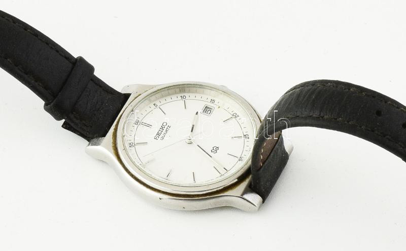 Seiko kvarc karóra, dátumkijelzéssel, bőr szíjjal, karcokkal, működik,... https://www.darabanth.com/de/455-Fernauktion/455.0/Kunst-Dokumente-andere-Sammelgebiete/Uhren~500011/Seiko-kvarc-karora-datumkijelzessel-bor-szijjal-karcokkal-mukodik-szamlap-d-30-mm~II3034705