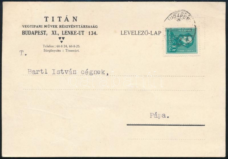 1938 Titán Vegyipari Művek R.T. Üzleti Levelezőlap https://www.darabanth.com/de/455-Fernauktion/455.0/Kunst-Dokumente-andere-Sammelgebiete/Werbungen~2000036/1938-Titan-Vegyipari-Muvek-RT-Uzleti-Levelezolap~II3040797