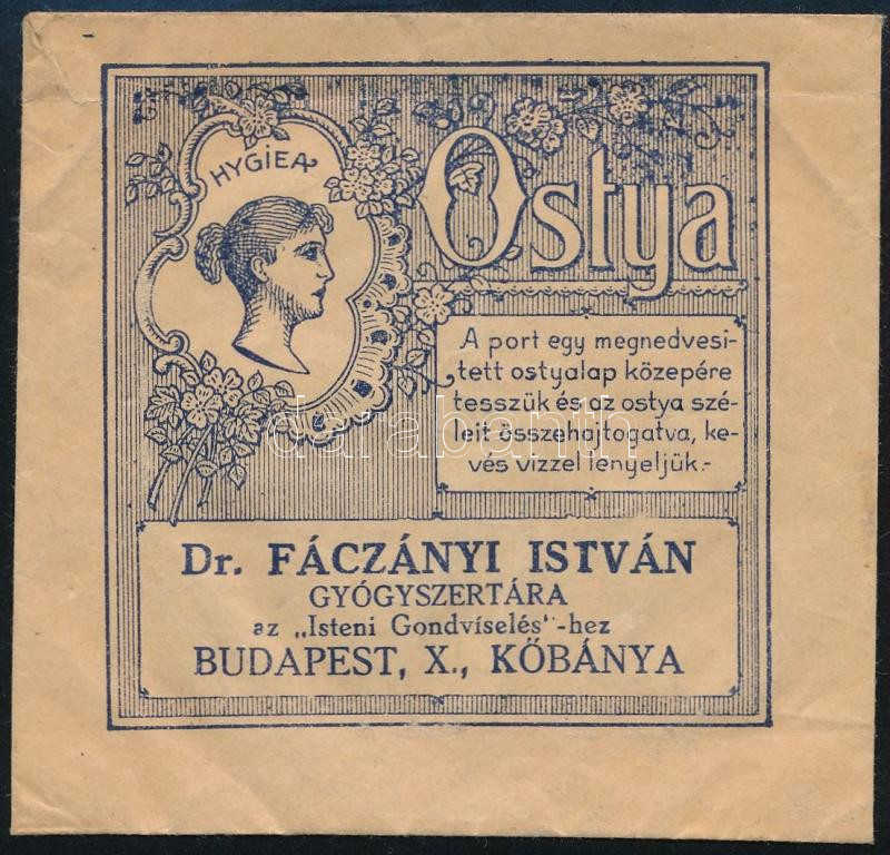Dr. Fáczányi István Gyógyszertára az "Isteni Gondviseléshez" Bp. X. Kő... https://www.darabanth.com/de/455-Fernauktion/455.0/Kunst-Dokumente-andere-Sammelgebiete/Werbungen~2000036/Dr-Faczanyi-Istvan-Gyogyszertara-az-Isteni-Gondviseleshez-Bp-X-Kobanya-ostyatasak~II3035171