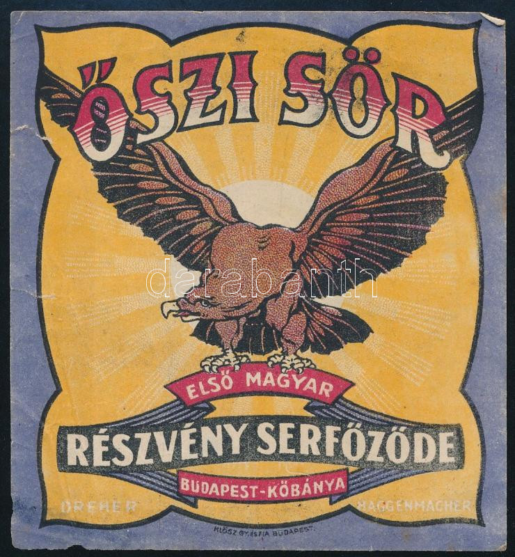 Első Magyar Részvény Serfőzde Őszi sör címke https://www.darabanth.com/de/455-Fernauktion/455.0/Kunst-Dokumente-andere-Sammelgebiete/Werbungen~2000036/Elso-Magyar-Reszveny-Serfozde-Oszi-sor-cimke~II3036751