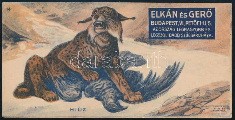 cca 1910 Hiúz, Elkán és Gerő szűcsáruháza (Bp. VI., Petőfi-u. 5.) szám... https://www.darabanth.com/de/455-Fernauktion/455.0/Kunst-Dokumente-andere-Sammelgebiete/Werbungen~2000036/cca-1910-Hiuz-Elkan-es-Gero-szucsaruhaza-Bp-VI-Petofi-u-5-szamolocedula~II3041418