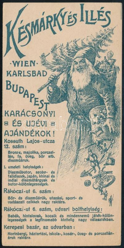 cca 1910 Késmárky és Illés Wien-Karlsbad-Budapest, karácsonyi és újévi... https://www.darabanth.com/de/455-Fernauktion/455.0/Kunst-Dokumente-andere-Sammelgebiete/Werbungen~2000036/cca-1910-Kesmarky-es-Illes-Wien-Karlsbad-Budapest-karacsonyi-es-ujevi-ajandekok-szamolocedula~II3041383