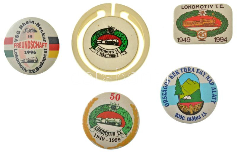 1989-2000. 5xklf fém és műanyag "Lokomotív TE" túrázó jelvény tétel T:... https://www.darabanth.com/de/455-Fernauktion/455.0/Numismatik/Sportpreise-und-Sportgedenkmedaillen~1000010/1989-2000-5xklf-fem-es-muanyag-Lokomotiv-TE-turazo-jelveny-tetel-T-AU-XF~II3033413