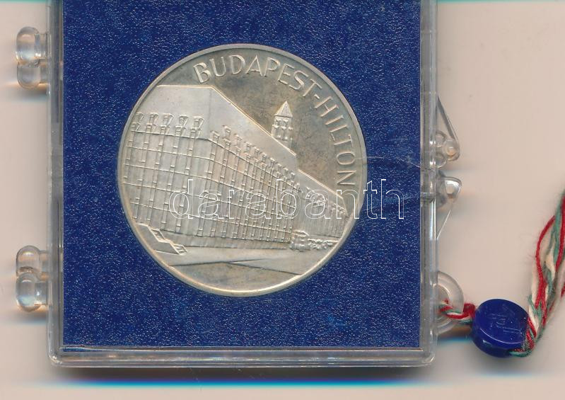 DN "Budapest Hilton" jelzetlen Ag emlékérem plombált ÁPV tokban (~12,50/0.640/32mm) T:PP patina
