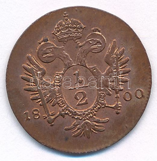 Beschreibung: Ausztria 1800A 1/2kr Cu "I. Ferenc" T:AU,XF kis patina