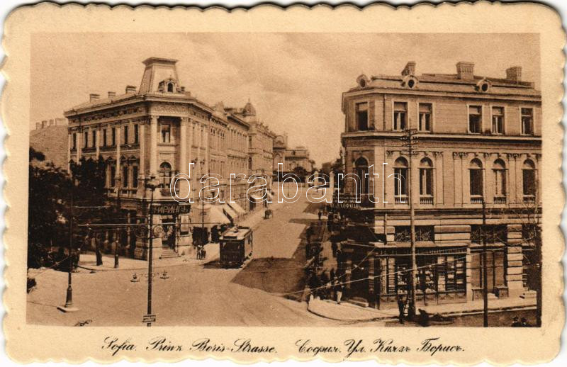Sofia, Prinz Boris Strasse / street, tram, shops https://www.darabanth.com/de/456-Fernauktion/456.0/Ansichtskarten/Bulgarien~1500023/Sofia-Prinz-Boris-Strasse-street-tram-shops~II3048433