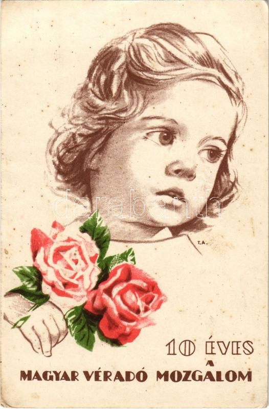10 éves a Magyar Véradó Mozgalom! Magyar Vöröskereszt - Köszönet és megbecsülés életmentő véradónknak / Propaganda card of the Hungarian Red Cross, 10th Anniversary of the Hungarian Blood Donor Movement (EK)