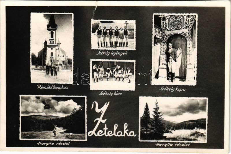 1943 Zetelaka, Zetea; Római katolikus templom, Hargita, Székely legény... https://www.darabanth.com/de/456-Fernauktion/456.0/Ansichtskarten/Siebenburgen~1500005/1943-Zetelaka-Zetea-Romai-katolikus-templom-Hargita-Szekely-legenyek-tanc-es-kapu-church-~II3046655