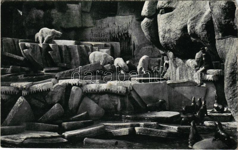 Beschreibung: 1918 Budapest XIV. Székesfővárosi Állatkert, Budapest Zoo, jegesmedvék és fókák. 11. sz. (EM)