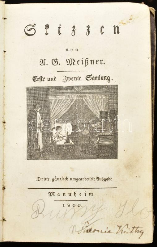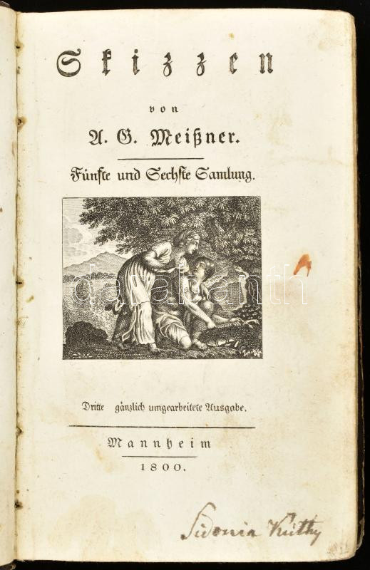 Beschreibung: Skizzen von A. G. Meißner. Ertse und Zweyte Sammlung, + Fünfte und Sechste Sammlung. Mannheim, 1800. Rézmetszetű címképekkel, korabeli kartonálásban