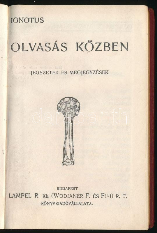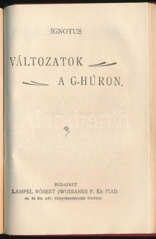Ignotus [Veigelsberg Hugó]: Olvasás közben. Jegyzetek és megjegyzések.; Változatok a G-húron. [Egy kötetben]. Bp., é.n. (cca 1900-1910), Lampel R. (Wodianer F. és Fiai), 216 p.; 55+(1) p. Egészvászon-kötésben, a borítón kisebb folttal, helyenként ceruzás bejegyzésekkel.