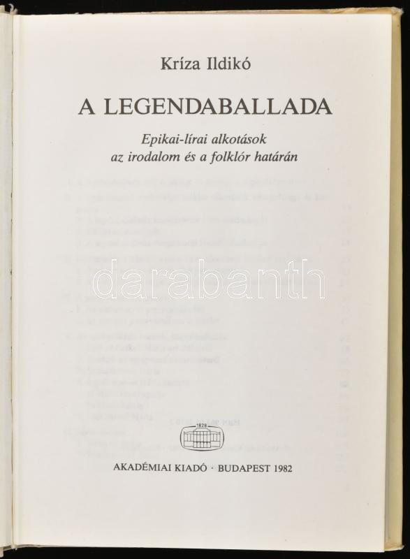 KrÃza Ildikó: A legendaballada. Epikai-lÃrai alkotások az irodalom és ... https://www.darabanth.com/de/456-Fernauktion/456.0/Bucher/Bucher-Andere-kuriositaten~1000034/Kriza-Ildiko-A-legendaballada-Epikai-lirai-alkotasok-az-irodalom-es-a-folklor-hataran-Bp-~II3050178