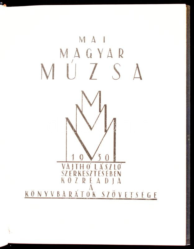 Mai magyar múzsa 1930. Szerk. Vajthó László. Bp., 1930, Könyvbarátok Szövetsége, 175 p. Szövegközti illusztrációkkal. Kiadói aranyozott félbőr kötésben, kissé kopott borítóval, a tartalomjegyzékben bejelölésekkel.