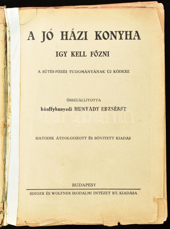 A jó házi konyha. Így kell főzni! A sütés-főzés tudományának új kódexe. Összeáll.: bánffyhunyadi Hunyady Erzsébet. Bp., é.n., Új Idők Irodalmi Intézet Rt. Korabeli félvászon kötésben,Sérült, ragasztott, egy két lap széle sérült.