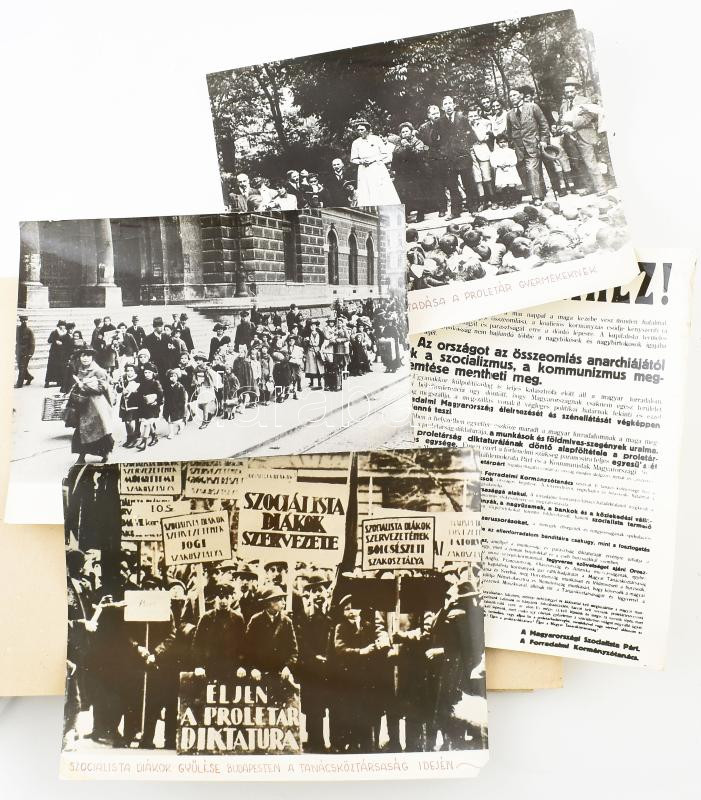 Beschreibung: A Tanácsköztársasággal kapcsolatos dokumentumokról, eseményekről készült fotók (későbbi nagyítások), össz. 7 db, a hátoldalon feliratozva, 30x24 cm