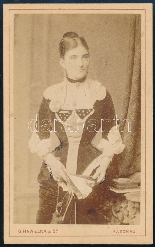 cca 1860-1890 Kassa (Felvidék), női portré keményhátú fotó Hawelka műt... https://www.darabanth.com/de/456-Fernauktion/456.0/Fotografie/Foto~500023/cca-1860-1890-Kassa-Felvidek-noi-portre-kemenyhatu-foto-Hawelka-mutermebol-vizitkartya-8x4-cm~II3045042