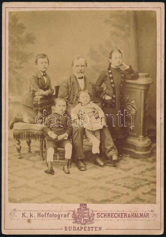 Beschreibung: cca 1875 Budapest, Schrecker és Kalmár fényképészek műtermében készült, keményhátú vintage fotó, 16x11,3 cm