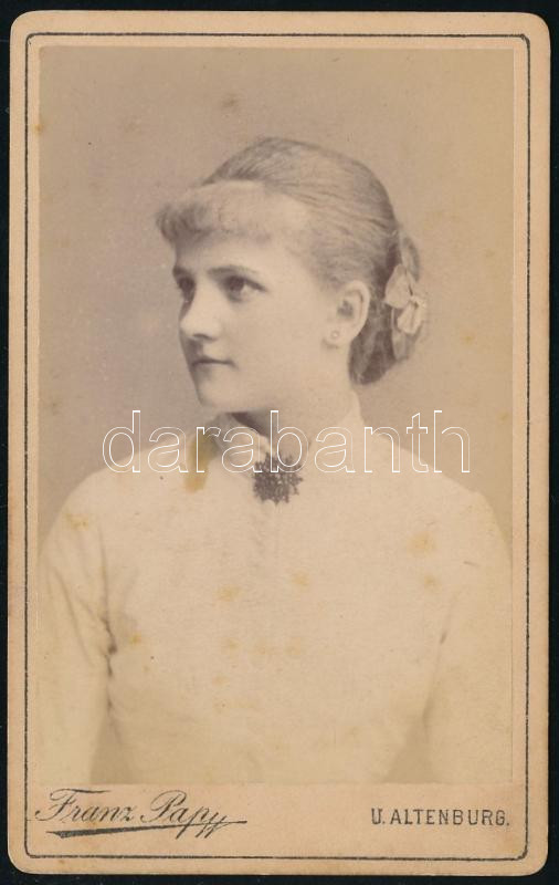 cca 1880 Fiatal hölgy portréja, keményhátú fotó Pap Ferenc mosonmagyar... https://www.darabanth.com/de/456-Fernauktion/456.0/Fotografie/Foto~500023/cca-1880-Fiatal-holgy-portreja-kemenyhatu-foto-Pap-Ferenc-mosonmagyarovari-mutermebol-10-5x6-5-cm~II3047959