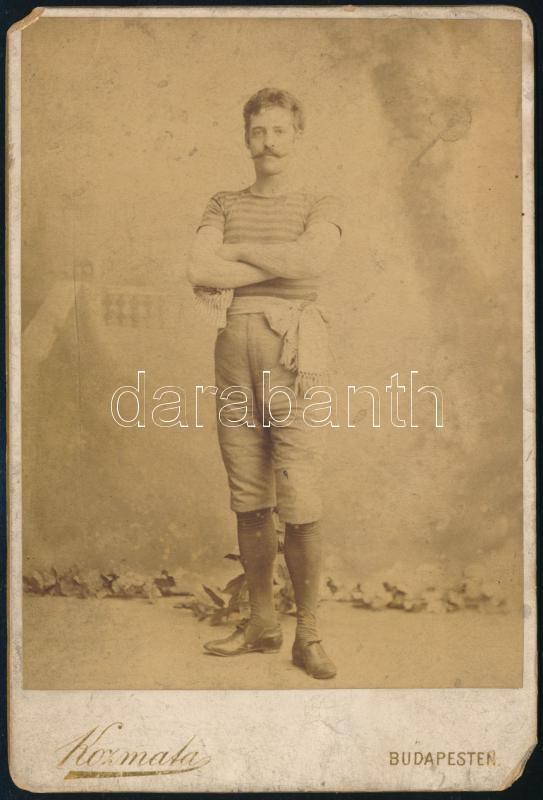 Beschreibung: cca 1885 Vajda Emil (1858-1916) zeneszerző, tanár mint sportoló, keményhátú fotó Kozmata Ferenc budapesti műterméből, sarkain sérülés, 16×11 cm