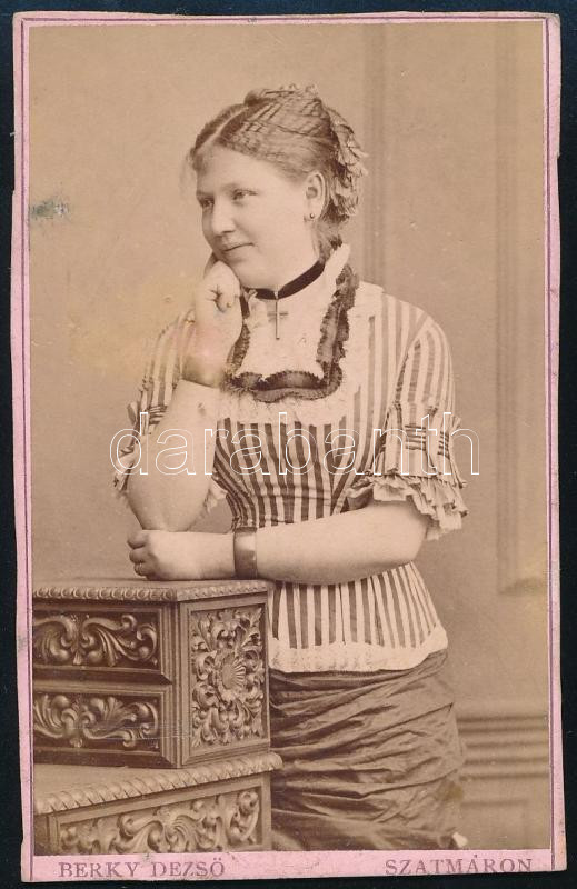 cca 1900 Női portré, keményhátú fotó Berky Dezső szatmári műterméből, ... https://www.darabanth.com/de/456-Fernauktion/456.0/Fotografie/Foto~500023/cca-1900-Noi-portre-kemenyhatu-foto-Berky-Dezso-szatmari-mutermebol-korbevagott-9-5x6-cm~II3044700