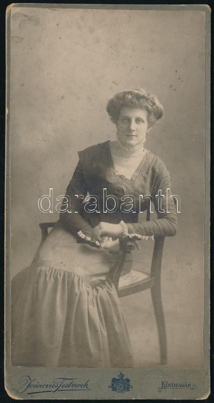 cca 1910 Hölgyportré, keményhátú fotó a Joánovics testvérek kolozsvári... https://www.darabanth.com/de/456-Fernauktion/456.0/Fotografie/Foto~500023/cca-1910-Holgyportre-kemenyhatu-foto-a-Joanovics-testverek-kolozsvari-mutermebol-16-5x8-5-cm~II3047996