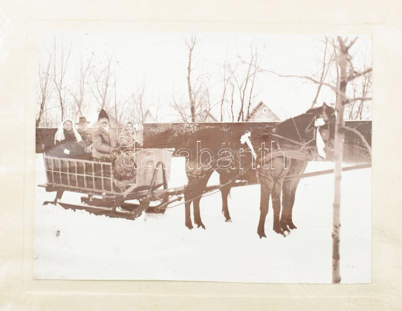 Beschreibung: cca 1930 Esküvő télen, lovasszánnal, fotó kartonon, jelzés nélkül, 17x23 cm