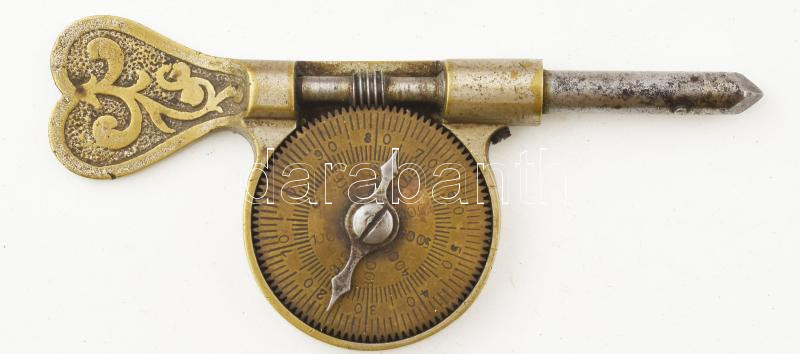 Beschreibung: Antik tachométer, ezüstözött bronz, gazdag ornamentikával díszített, kissé kopott, h: 10,5 cm