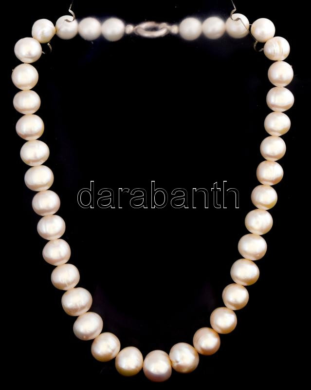 Beschreibung: Nagy méretű tenyésztett gyöngy nyaklánc ezüst(Ag) kapoccsal, jelzett, h: 44 cm