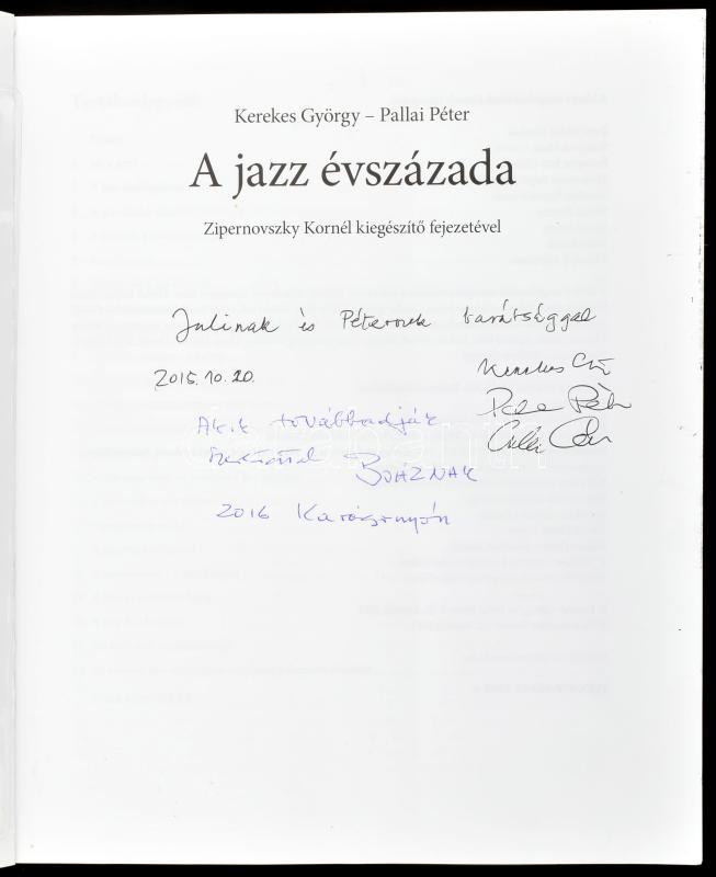 Kerekes György - Pallai Péter: A jazz évszázada. Zipernovszky Kornél kiegészítő fejezetével. Bp., 2015, FIdelio Media Kft. Kiadói papírkötés. A szerzők által DEDIKÁLT példány.