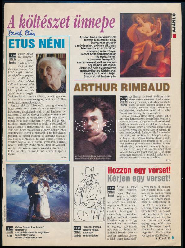 József Etelka (1903-2004) József Attila nővérének aláírása újságlapon https://www.darabanth.com/de/456-Fernauktion/456.0/Kunst-Dokumente-andere-Sammelgebiete/Signatur~500022/Jozsef-Etelka-1903-2004-Jozsef-Attila-noverenek-alairasa-ujsaglapon~II3051019