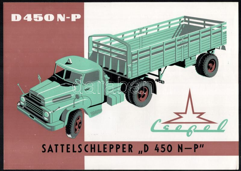 1965 Csepel D450 N-P nyergesvontatós tartálykocsi német nyelvű dekorat... https://www.darabanth.com/de/456-Fernauktion/456.0/Kunst-Dokumente-andere-Sammelgebiete/Werbungen~1000036/1965-Csepel-D450-N-P-nyergesvontatos-tartalykocsi-nemet-nyelvu-dekorativ-reklamlapja-muszaki~II3049669