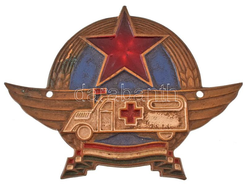 ~1952. Rákosi címeres mentős festett, lemez sapkajelvény (40x53mm) T:AU,XF