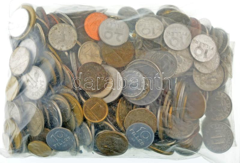 Beschreibung: Vegyes, magyar és külföldi érmetétel mintegy ~1kg súlyban T:vegyes Mixed, Hungarian and foreign coin lot (~1kg) C:mixed