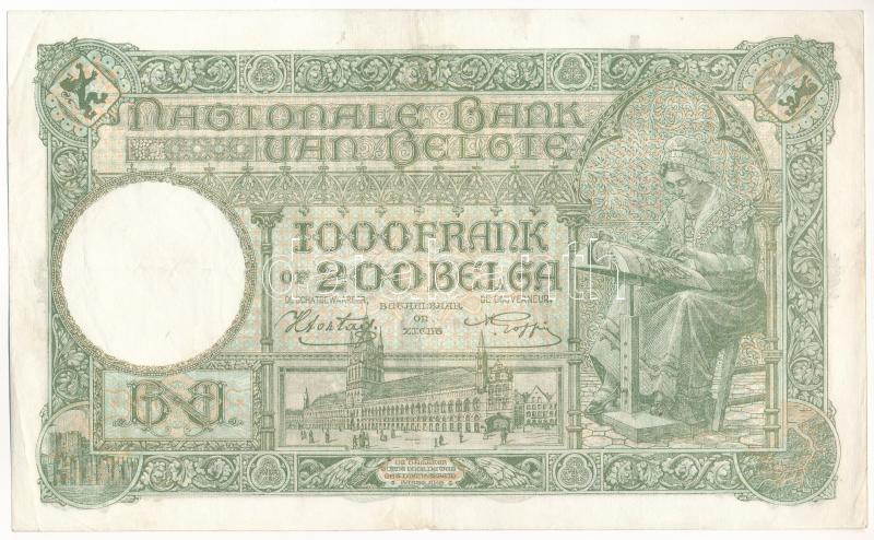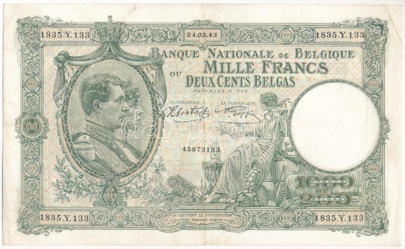 Belgium 1943. 1000Fr T:F apró anyaghiány