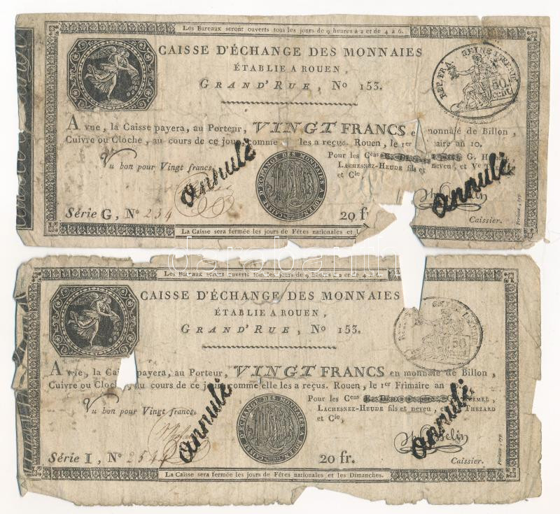 Beschreibung: Franciaország / Rouen 1797-1803. 20Fr "annulé (érvénytelen)" felülbélyegzéssel (2x) T:G