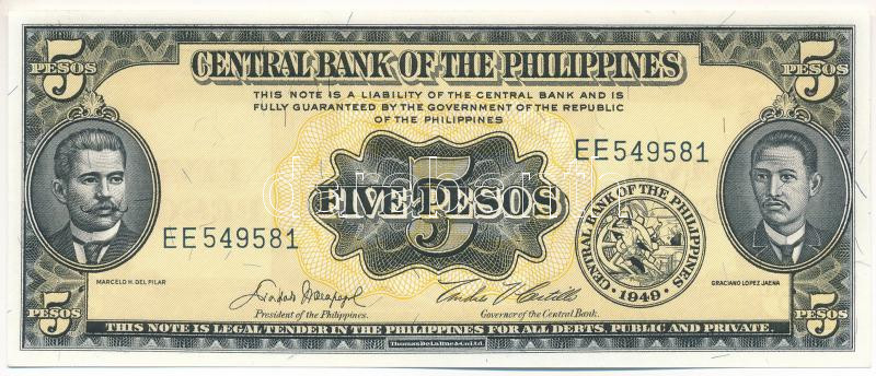 Fülöp-szigetek 1949. 5P T:UNC Philippines 1949. 5 Pesos C:UNC