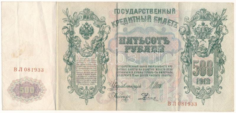 Orosz Birodalom 1912-1917 (1912) 500R Szign.: Shipov T:F Russian Empir... https://www.darabanth.com/de/456-Fernauktion/456.0/Numismatik/Weltweit-Banknoten~2000015/Orosz-Birodalom-1912-1917-1912-500R-Szign-Shipov-T-F-Russian-Empire-1912-1917-1912-500~II3004716