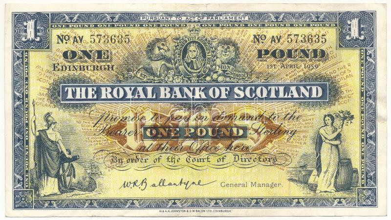 Scotland 1959. 1 Pound "The Royal Bank of Scotland, W.R. Ballantyne" C:F fine paper
