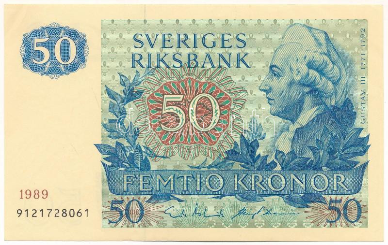 Sweden 1989. 50 Kronor C:F fine p... https://www.darabanth.com/de/456-Fernauktion/456.0/Numismatik/Weltweit-Banknoten~2000015/Svedorszag-1989-50K-T-F-szep-papirSweden-1989-50-Kronor-C-F-fine-paperKrause-52~II3040514