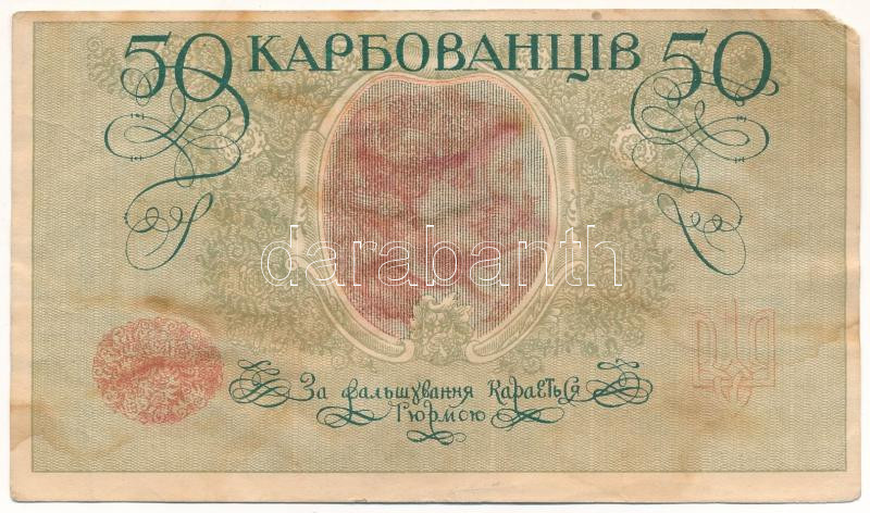 Beschreibung: Ukrajna / Autonóm Köztársaság 1918. 50K T:F folt, kis anyaghiány, erős papír Ukraine / Autonomous Republic 1918. 50 Karbovantsiv C:F spotted, small missing material, strong paper