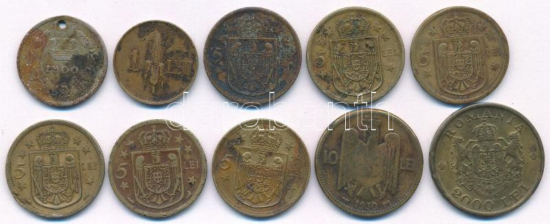 Romania 1900. 5 Bani Cu-Ni (hole) + 1930. 5 Lei Ni-brass "Mihai I" (6pcs) + 1930. 10 Lei Ni-brass "Carol II" + 1938. 1 Leu Ni-brass + 1946. 2000 Lei Ni-brass "Mihai I" C:XF-VG
