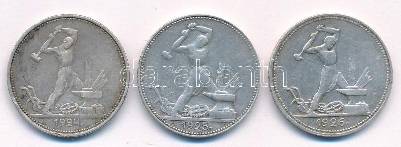 Szovjetunió 1924-1926. 1P (50k) Ag (3xklf) T:XF-F patina, kis ph