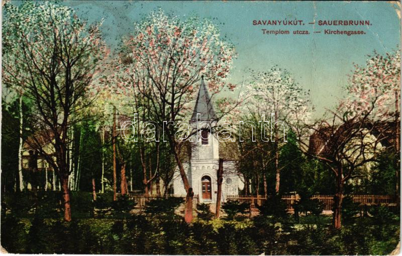 Beschreibung: 1918 Savanyúkút, Sauerbrunn; Templom utca. Hönigsberg Frigyes / Kirchengasse / street view (EB)