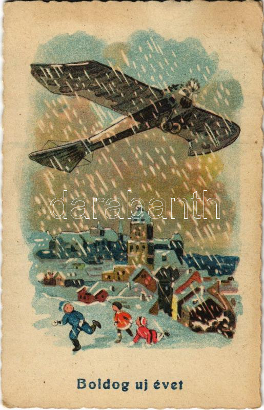 1933 Boldog új évet! Repülőgép / New Year greeting with aircraft (EK) https://www.darabanth.com/de/457-Fernauktion/457.0/Ansichtskarten/GruC39Fkarten-Feste~1000054/1933-Boldog-uj-evet-Repulogep-New-Year-greeting-with-aircraft-EK~II2950167