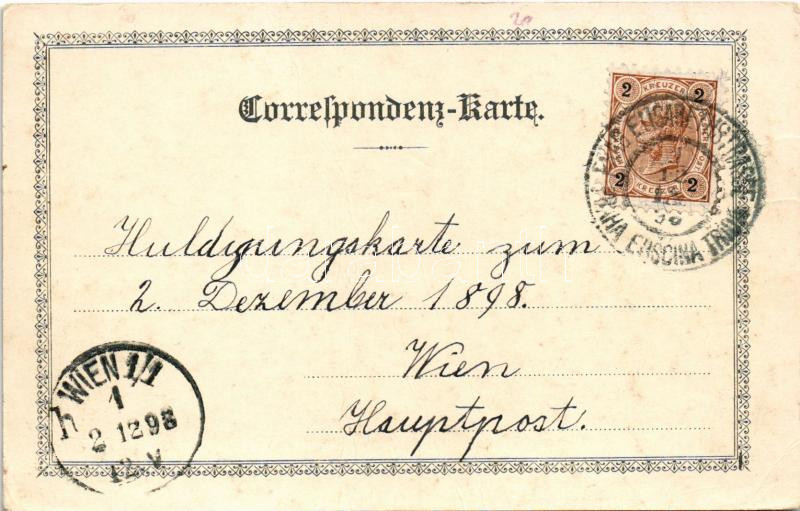 1898 (Vorläufer) Zur Erinnerung an das 50 jähr. Regierungs-Jubiläum des Kaiser Franz Josef I. / Ferenc József uralkodásának 50. évfordulója / 50th anniversary of Franz Joseph's reign. litho (fa)