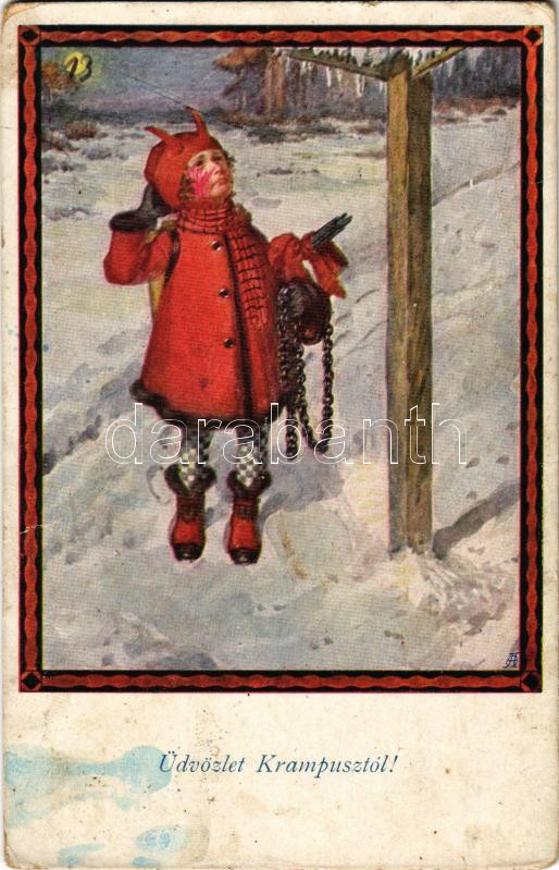 1923 Üdvözlet a Krampusztól! / Child in Krampus costume (Rb) https://www.darabanth.com/de/457-Fernauktion/457.0/Ansichtskarten/Krampus~1000034/1923-Udvozlet-a-Krampusztol-Child-in-Krampus-costume-Rb~II3053841