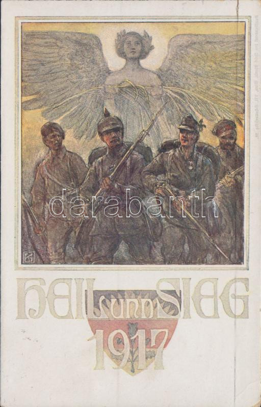 Beschreibung: 1917 Heil und Sieg; Deutscher Schulverein Karte Nr. 1000. / WWI military propaganda, artist signed (b)